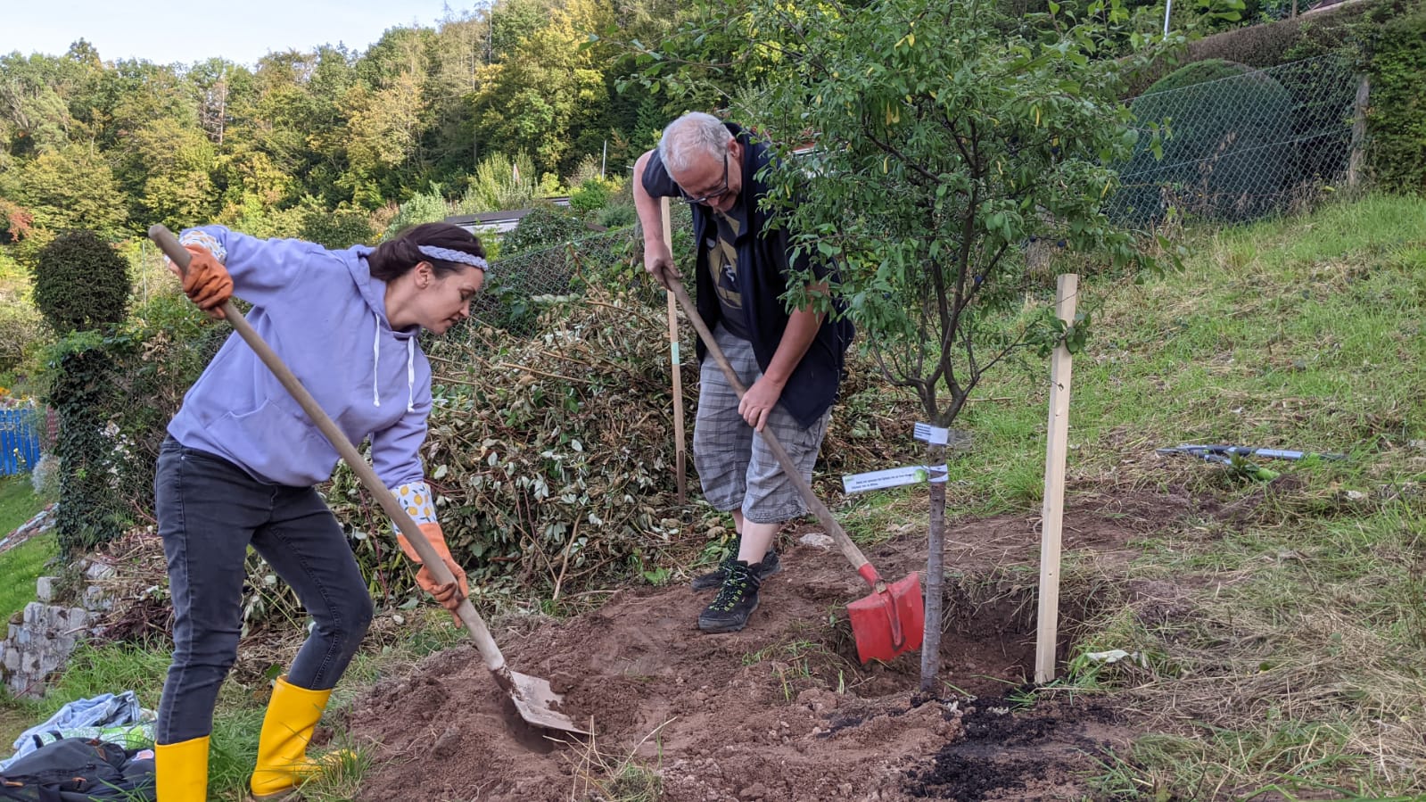 Zwei Bäume laden seit 2. Oktober 2021 am Stuttgarter Hang dazu ein den herrlichen Weitblick über Stuttgart zu genießen. Ein Faulbaum, der letztes Jahr im Rahmen einer sogenannten Baumwanderung in Kooperation mit der Wanderbaumallee auf den Raichberg gewandert ist, hat nun Gesellschaft von einer prächtigen Schlehe bekommen.