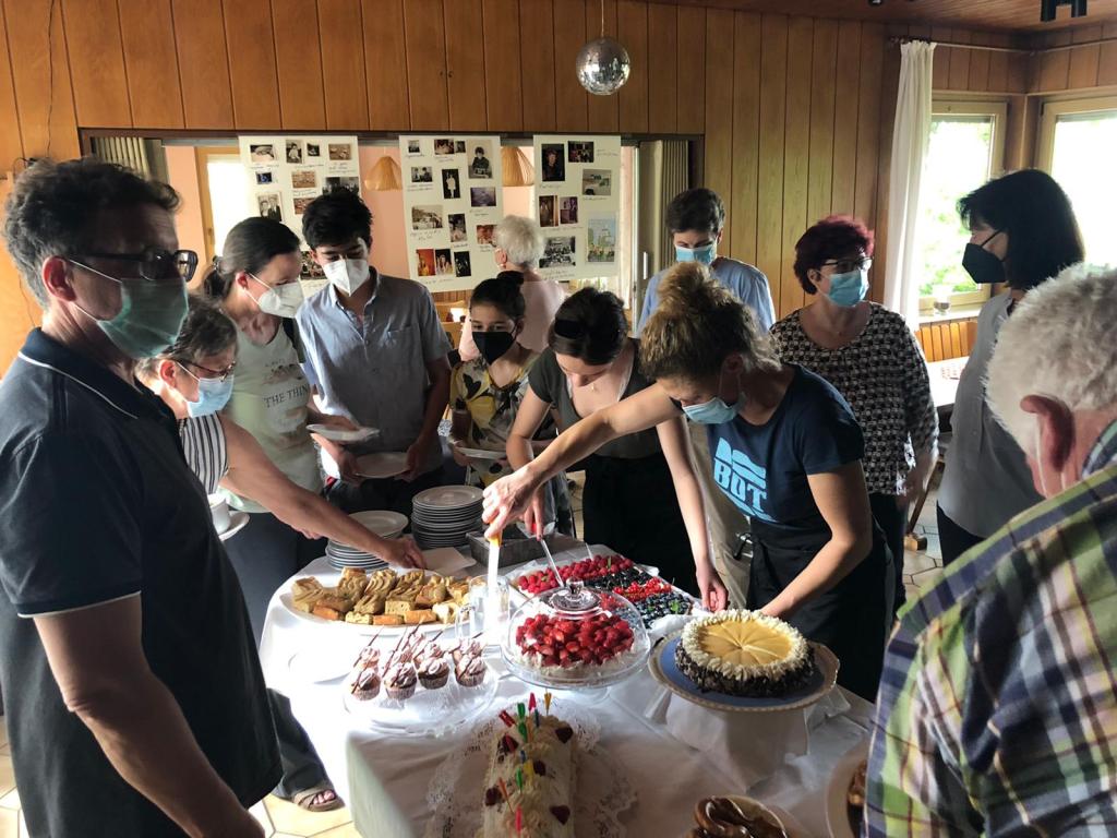 Am Samstag, den 26.Mai 2021, feierte unsere Gabi zusammen mit Ihrer Verwandtschaft, ehemaligen Gästen und Freunden Ihren 70. Geburtstag und damit auch ihren Abschied aus der Ratze. Die Feier wurde von den neuen Pächterinnen Claudia und Tanja prächtig organisiert und durchgeführt. Nach dem Sektempfang gab es Kaffee und Kuchen, anschließend und den ganzen Abend über kleine Häppchen im Glas serviert, wie z.B. Fleischküchle mit Kartoffelsalat, Fischcreme, Tomaten-Mozzarella, Wurststückchen und vieles mehr. Gabi selbst hielt eine tolle Rede über die vergangenen Jahre als Wirtin unserer Vereinsgaststätte und ihre weiteren Pläne, z.B. Bahnreisen in deutsche Städte. Außerdem sagte unser Vorstand Karsten Hoppe noch einige Worte und überreichte einen Gutschein.